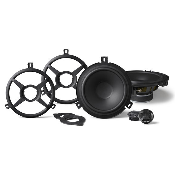 One of the best parts of owning a Jeep is being able to cruise with the top down, but that can make it difficult to hear your music through the factory sound system. Instead of picking between enjoying the sun or your tunes, get the best of both worlds with the Marine Grade (IP55 Rated) Alpine SPV-65X-WRA Component 2 Way Speaker System, which is tuned for your Jeep to maximize sound output and bass response. These easy to install replacement speakers offer premium performance in one convenient package. The SPV-65X-WRA feature a 6.5” woofer and a 1” tweeter, which is a huge upgrade over the factory 4" speaker. Alpine also includes coaxial crossovers that allow the tweeters to be mounted in the center of the speaker grille. Installation is completely plug-n-play, and no modification is required.