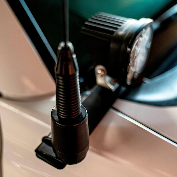 So, you want to mount your NMO antenna by your windshield, but you already have a ditch light there? That is no longer an issue because the Midland Ditch Light Extension Bracket mounts to an existing ditch light and has a 5/8-inch hole for your NMO antenna. It can also be mounted to either the driver or passenger side!