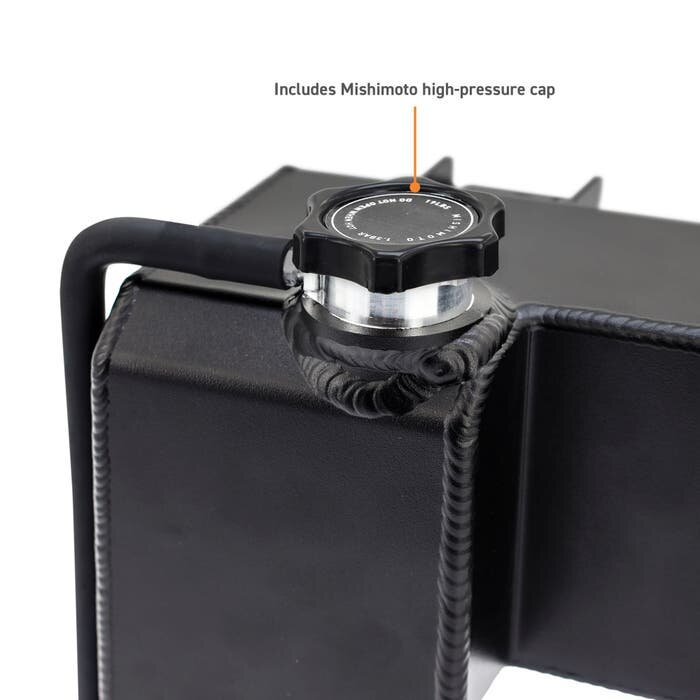 CNC-machined from high-strength 6061 aluminum, this milled expansion tank delivers long-term durability and corrosion resistance well beyond factory plastic components. With increased fluid volume, the Mishimoto expansion tank helps support more consistent coolant temperatures under high-load scenarios such as towing, off-roading, or spirited driving. The direct bolt-on design installs cleanly without modification and accepts standard coolant pressure caps, making it a straightforward upgrade that integrates seamlessly with your Tacoma’s cooling system. Finished in a durable black powder coat, this expansion tank also provides an elevated engine bay look while helping maintain efficient thermal performance for daily driving and demanding use alike.