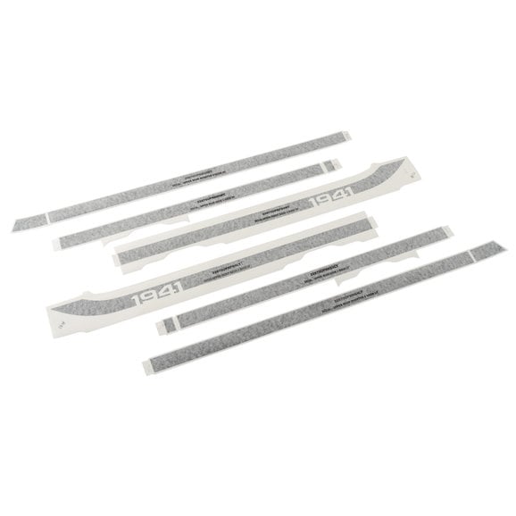 Show off your Jeep pride with the 1941 Swoosh Graphic. This side graphic from Mopar is designed for Jeep JL 4-door models, celebrating the iconic year of 1941. It adds a stylish and unique touch to your vehicle's exterior. Made with high-quality materials, it ensures durability and long-lasting performance, making it an essential accessory for Jeep enthusiasts.