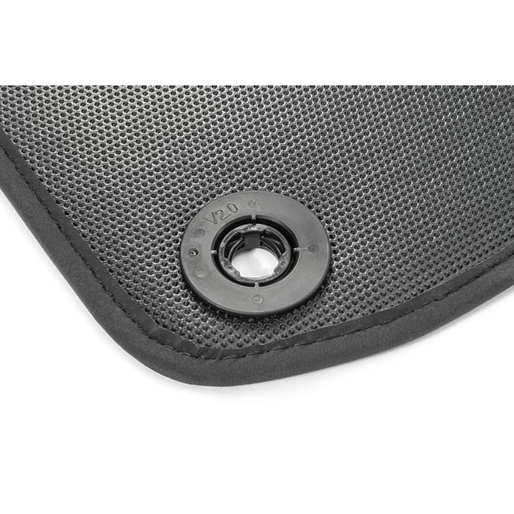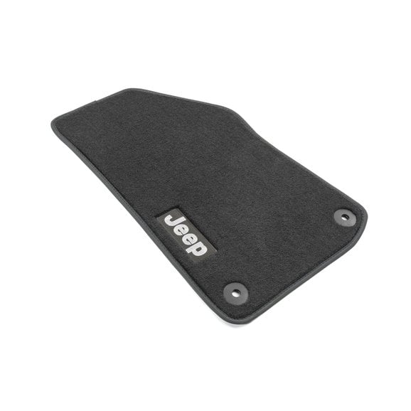 The Mopar 4pc Carpeted Jeep Logo Floor Mats will protect the carpeting in your Jeep Wrangler JL 2-Door. Including all 4 mats to do the font and rear for both sides. Available in black and specific for the 2-door model JL. Premium 36 oz tufted nylon carpeted floor mats with stylish white Jeep logo that not only protect you carpet, but add some brand bling to you floor. The Friction backing along with the retention grommets prevent sliding and helps keep liquids for getting to your carpet below. Mopar has designed these floor mats for durability.