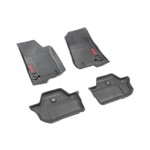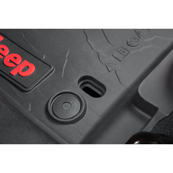 Ultimate Mopar Protection: The high wall bucket style floor liners provide maximum coverage and protection from snow, rain, sand, and any other debris that could possibly damage the factory carpeting. The terrain-style design and red Jeep brand logo give an upgraded appearance and high quality feel!