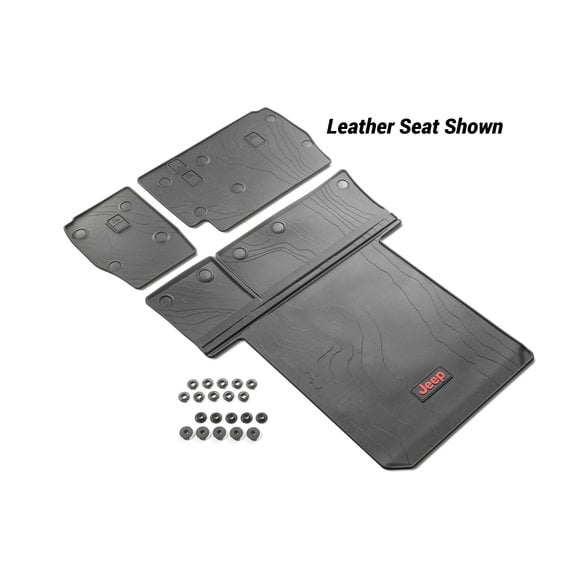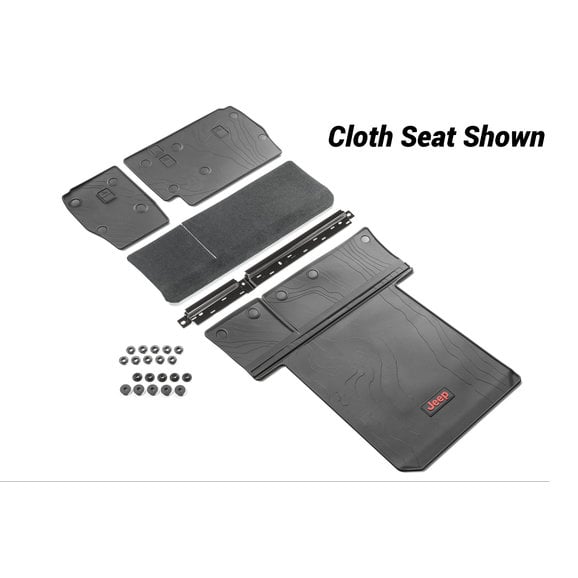 Secure your cargo and protect your carpet and leather seats with the Mopar Molded Cargo Tray for your 2018-24 Jeep Wrangler JL. Constructed from a durable skid-resistant rubber, the cargo tray is molded to fit the exact contours of the cargo area of your Jeep. Keep mud, dirt, grease & grime from ruining your carpet and seats. The Cargo Tray can be easily removed for cleaning. Kit includes the cargo tray to cover the rear floor, and a seat back cover to protect the back of your leather seats to keep your Jeep cargo area looking like new. Some trimming of the rear seat is required for installation. Only the cloth seat version includes the additional carpeted cargo cover with metal mounting bracket as shown here. Features a 12-month, 12,000-mile warranty.