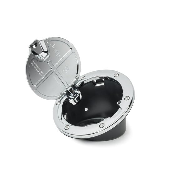 Give your vehicle a sporty look by adding a Chromed or Black Powder Coated Aluminum Fuel Filler Door. Easy No Drill installation, Smooth door operation, and meets all Chrysler corrosion standards.
