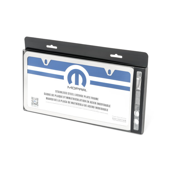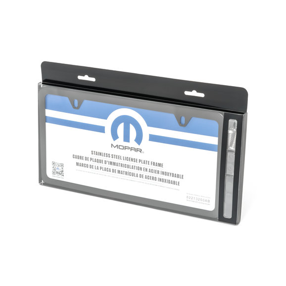 The Mopar License plate frame is a universal fitment with a quality you expect. Constructed from stainless steel and available in a polished or black finish. A clean looking premium product that will put that finishing touch on your Jeep. Sold each.