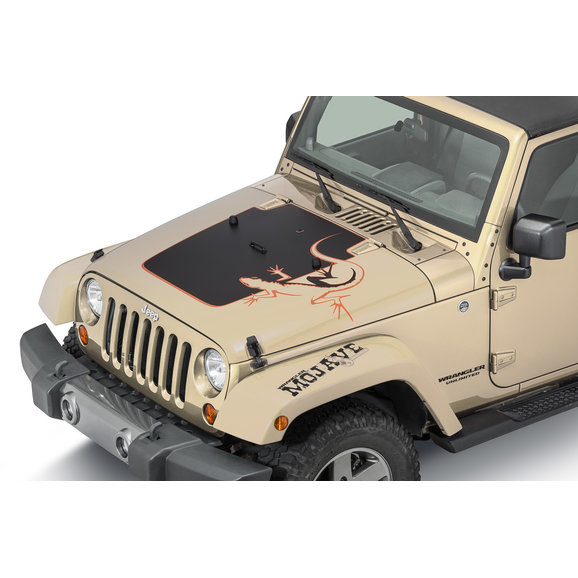 Replacement "Lizard" Hood Decal from "Mojave" Edition Wrangler JK models. Template is set for single washer nozzle hoods but will work with older single model versions from 07-12.