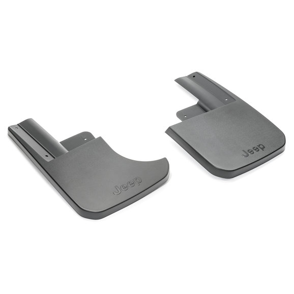 The Mopar Rear Molded Splash Guards provide protection from rocks, mud, snow and road debris on your Jeep Gladiator JT while adding style. These guards are tested by Mopar to the highest standards in durability & are molded boasting the Jeep logo for a perfect custom fit. Add even more style by custom painting them to match the factory paint color. Sold as a pair for the rear.