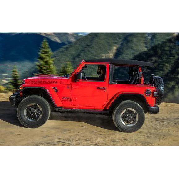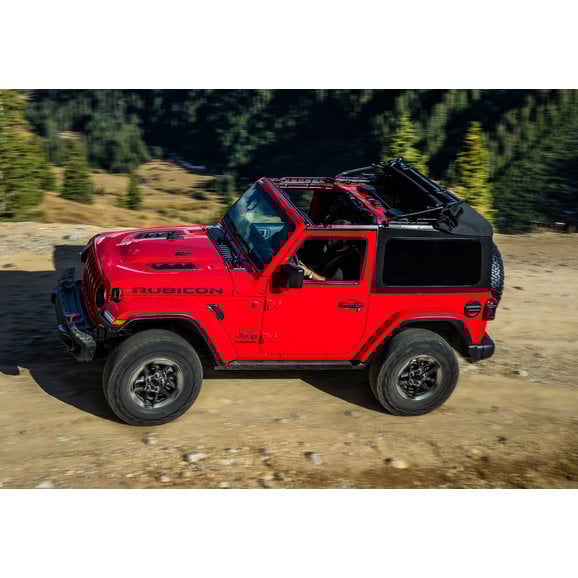 This brand new Mopar Sailcloth Soft Top Kit is unlike anything you’ve ever seen on a Wrangler. This complete soft top kit from Mopar will include everything necessary to make the transformation from hard top to a soft top on the Wrangler JL vehicle. This top kit features an upgraded Sunrider feature with a gas strut assisted mechanism that is simple to detach and open the front section. Once the top is flipped back in Sunrider position, simply pull the handle in the rear to release the hardware and allow the top to move and down with little effort on the new hardware rails. With these new innovative designs, gone are the days of struggling with bulky hardware to raise or lower the soft top. The rear 40mil thick windows glide in and out using a zipper-less C-channel attachment and when removed leaves you with a full length safari style bikini top for the ultimate in open air feel. The Mopar Soft Top is designed to work perfectly with the factory full steel doors to make a complete seal from the elements. The thick black Sailcloth material is extremely durable and quiet, and is designed to last through any type of weather.