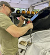 The mopar template is well designed. You have to cut the inner lining then cut the outer shell a bit smaller. Warning: As you go away from the outer edge towards the center of the hood the two layers actually meet. We cut a little into the outer layer a bit too high , so in the end the access hole is just a little to large for the intake connector. After a few deep breaths, and some F bombs we made adjustments and got the hood hole liners to fit. I’m darn lucky I have an older brother who can fix anything including his 1969 Land Rover.