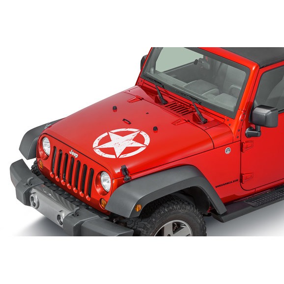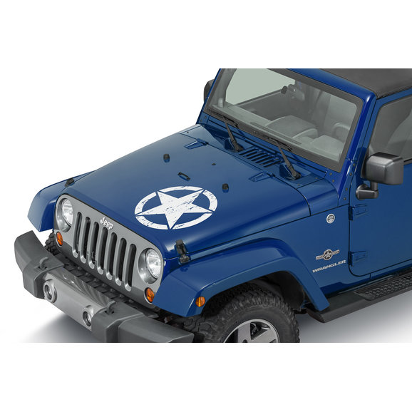 Replacement "Star" Hood decal from Wrangler JK "Freedom" Editions. Template is set for single washer nozzle hoods but will work with older single model versions from 07-12.