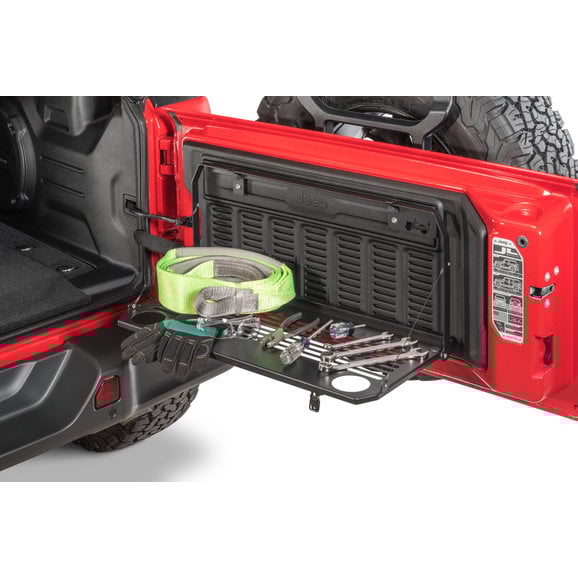 Convenient Work Space The Mopar tailgate table is large enough to use as a picnic table for tailgates or lunch on the trail. It also makes for a great workbench while working on your Jeep.