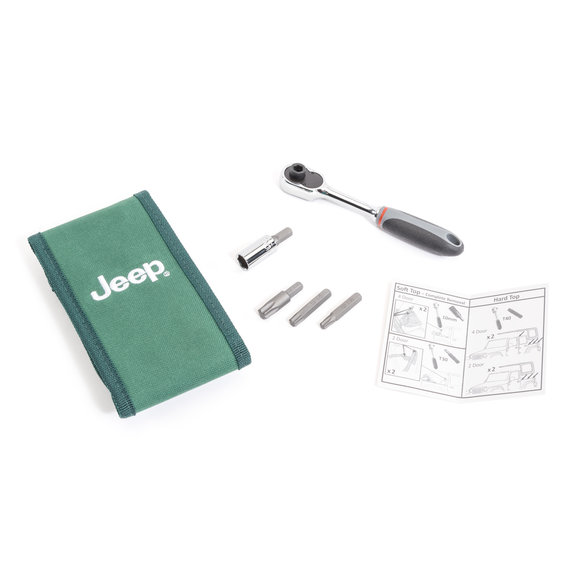 This Mopar torx tool set includes everything you need to remove your hardtop, softop, and doors. The Jeep® logo pouch is the perfect size to keep in your glove box or center console.