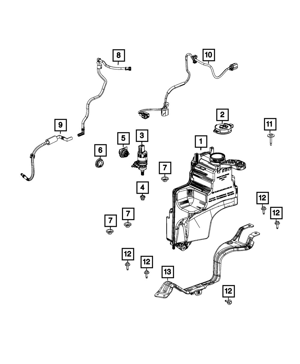 Genuine Mopar OEM Part: Washer hose (Part #68456244AA) designed to meet factory specifications. Part can be found as reference #9 in illustration.