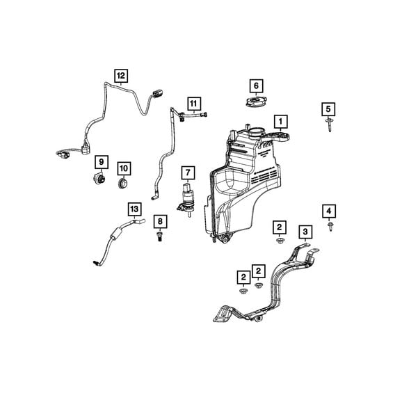 Genuine Mopar OEM Part: Designed to meet factory specifications for reliable windshield washer fluid storage. Part can be found as reference #1 in the illustration.