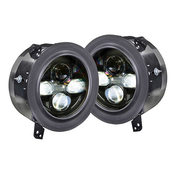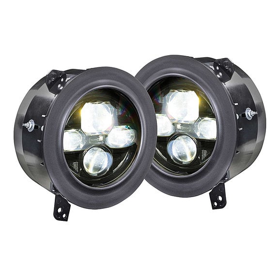 The Morimoto Sealed7 Headlights come with an advanced Kuria Optic projector lens and the Sealed7 efficiently distributes brilliant illuminating light that is roughly 3000 lumens on the road in a focused beam pattern. Thanks to running all of the optics together in high beam mode, the output is intensified to nearly 4000 lumens. This will brighten even the darkest roads and give you safe visibility. The quad-optic setup at the corners acts as a high-intensity white daytime running light as well as a switchback turn signal to complement the blinkers in the lower grille. The switchback setup on the turn signal will automatically interrupt the white DRL, flash, and then return to white once the signal stops. Installation is relatively easy and you can be up and lighting up the night sky in no time.