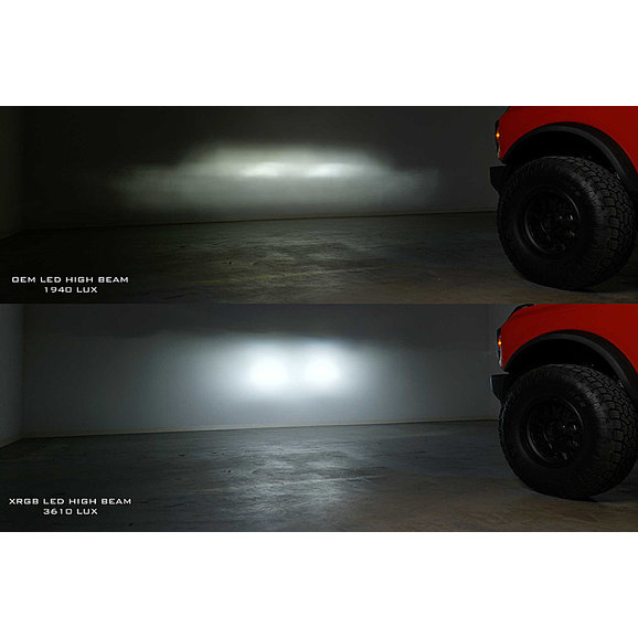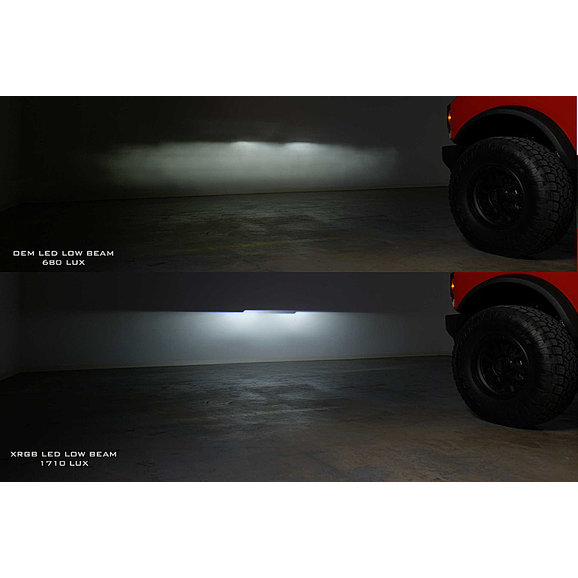 Take your Bronco’s performance and customization to the next level with the Morimoto XRGB LED Headlights. These headlights offer significantly improved visibility with low beams rated to be 150% brighter than stock and high beams rated 86% brighter with an optimized beam distribution pattern, so whether you’re on the road or the trail you’ll be able to see everything ahead of you.