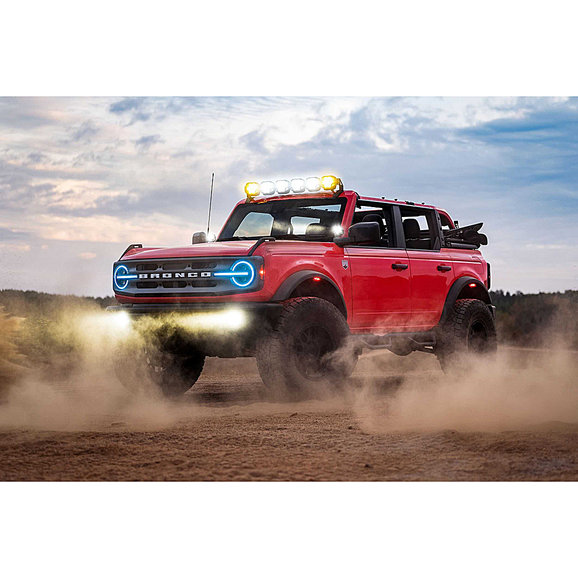 Specially designed for the Bronco, these lights offer a plug and play installation to OEM connectors and are compatible with the Bronco’s digital interface. These lights are built to stand the test of time, featuring injection-molded ABS housing and durable polycarbonate lenses. When you need to add a bit of flair to your next trail ride or car show, enjoy the changeable XRGB colored daytime running lights that’s controllable via a convenient smartphone app. Backed by Morimoto’s Five-Year Warranty, you can buy these headlights with peace of mind.