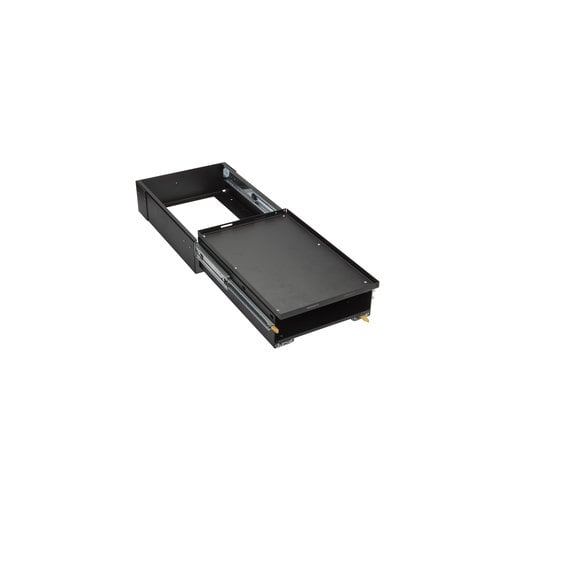 Overlanding and taking the comforts of home with you on the trail is simple with MORryde. The Trail Kitchen with Stove Tray is a modular assembly for the Jeep Wrangler, designed to carry fridge/freezers, up to giant 50 quart size, on a sliding rack, this kitchen includes an additional sliding compartment and tray with an additional 300 cu.in. of storage and platform for a personal 2-burner camping stove. Create your own kitchen-away-from-home with additional folding shelf and MOLLE rack (sold separately).