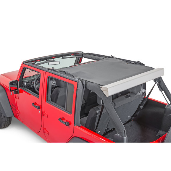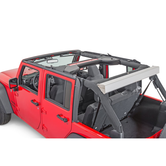 - Roll out the JK Roller Shade halfway on 4-doors to keep the rear passengers in the shade or all the way forward to the windshield to shade everyone.