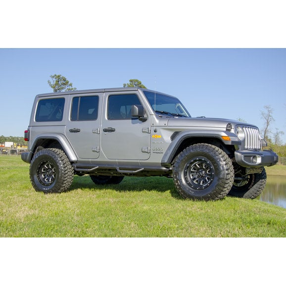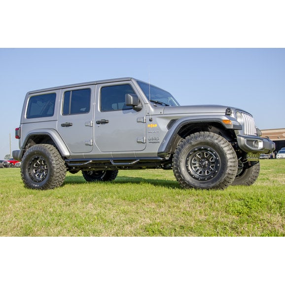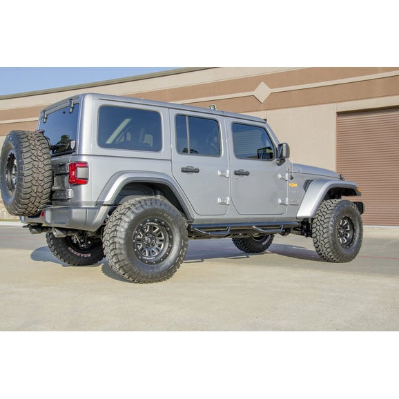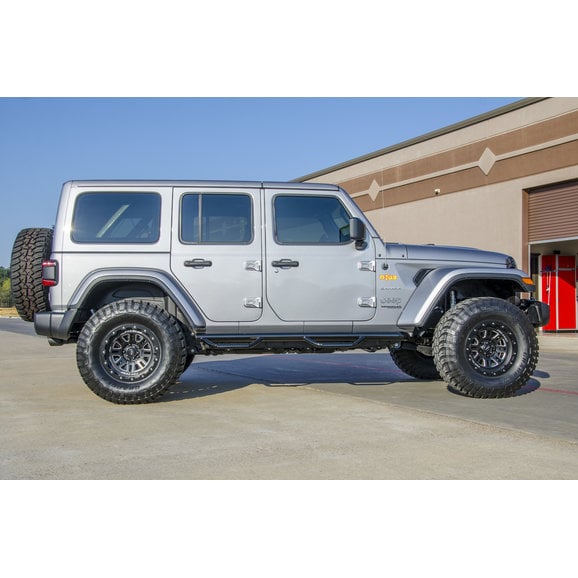 Functional Protection: The heavy duty 3" tubular Nerf-Steps are made from .084 wall steel tubing, that will provide much needed side protection for road or trail debris. The patented drop down style step is plenty large enough for a fully functional step and is textured to provide traction while stepping into the Wrangler JL. This pair of Nerf-Steps is a wheel to wheel design that will run the length of the side from well to well.