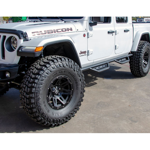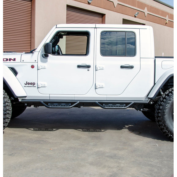 Modern Aspects: The main tube of these steps sit high and close to the body of your Gladiator JT giving you a clean modern look while the sleek drop down steps allow for easy access.