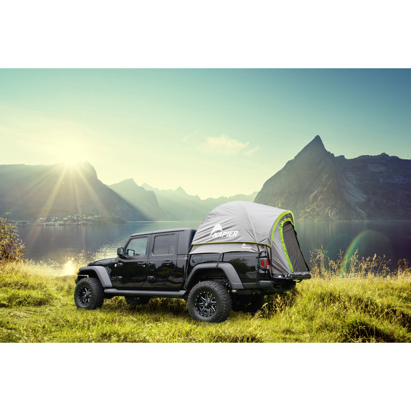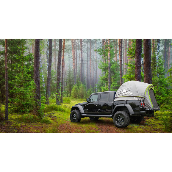 After a long day out on the trail or at the beach, rest and relax easily in the Backroadz Truck Tent from Napier Outdoor Products. This innovative tent attaches quickly to the bed of your Gladiator JT or mid-sized truck, letting you choose your next campsite. The spacious tent features over 5.7ft. of headroom that comfortably sleeps 2 adults. Fully enclose and protect yourself from the elements with the included rainfly that installs in minutes! The overhead gear loft, as well as 2 mesh pockets, provides for extra storage for small items. This Backroadz Truck Tent can be installed easily with one person in about 10 minutes using the supplied color-coded poles and hardware. This 3 season tent is made from durable polyester taffeta material with a 1200mm PU coating for waterproofing. The full tent floor is manufactured from high-quality polyethylene and all windows polyester mesh. The large entrance door, 3 mesh windows, and 2 ceiling vents provide great visibility and airflow to enjoy a nice breeze. All necessary hardware is included for setup, including tent poles, stakes, and storage bags.