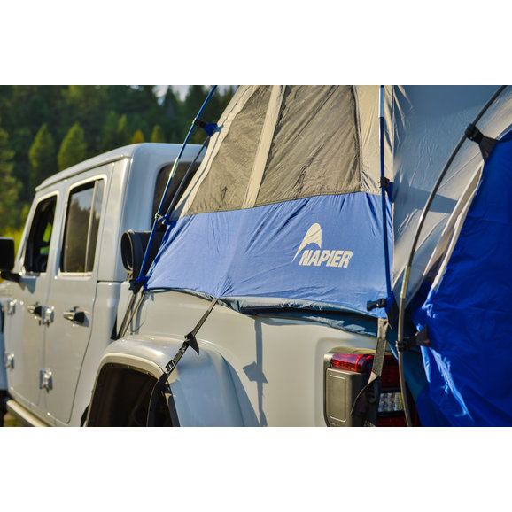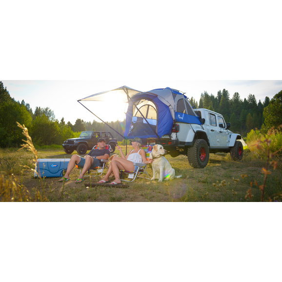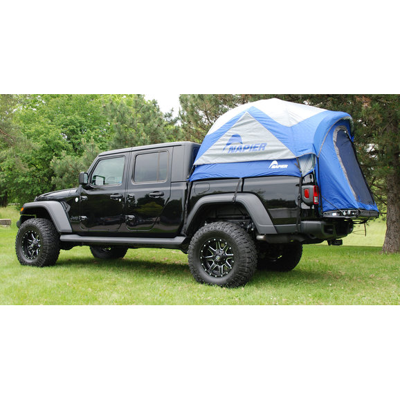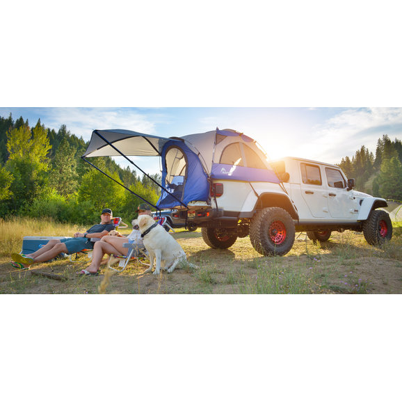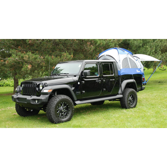 After a long day out on the trail or at the beach, rest and relax easily in the Sportz Truck Tent from Napier Outdoor Products. This innovative tent attaches quickly to the bed of your Gladiator JT or mid-sized truck, letting you choose your next campsite. The spacious tent features over 5.7ft. of headroom that comfortably sleeps 2 adults. Fully enclose and protect yourself from the elements with the included rainfly that installs in minutes! The overhead gear loft, as well as 2 mesh pockets, provides for extra storage for small items. The included large 4ft x 4ft. awning provides additional coverage for any extra gear(wet shoes!). This Truck Tent can be installed easily with one person in about 10 minutes using the supplied color-coded poles and hardware. This 3 season tent is made from durable polyester taffeta material with a 1200mm PU coating for waterproofing. The full tent floor is manufactured from high-quality polyethylene and all windows polyester mesh. The large entrance door, 3 mesh windows, and 2 ceiling vents provide great visibility and air flow to enjoy a nice breeze. All necessary hardware is included for setup, including tent poles, awning poles, stakes, and storage bags.