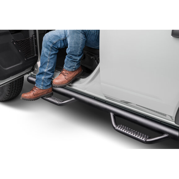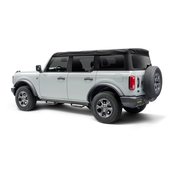 The N-FAB Nerf Bars makes getting in and out of your Bronco easy and comfortable. The patented N-FAB hoop step design features a 3" main tube diameter for added strength constructed with a .084 wall steel tubing. The patented drop-down step design and location are engineered to allow for ease of access to doors. This application fits high and tight to the vehicle body for a clean, modern style and protection from road debris. The N-FAB Cab Length Nerf Bars are designed with a fully welded 1-piece construction for strength, long-lasting durability & ease of installation.
