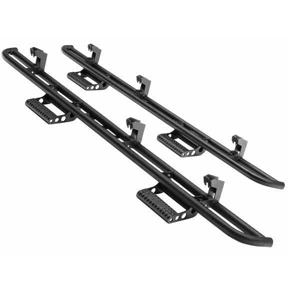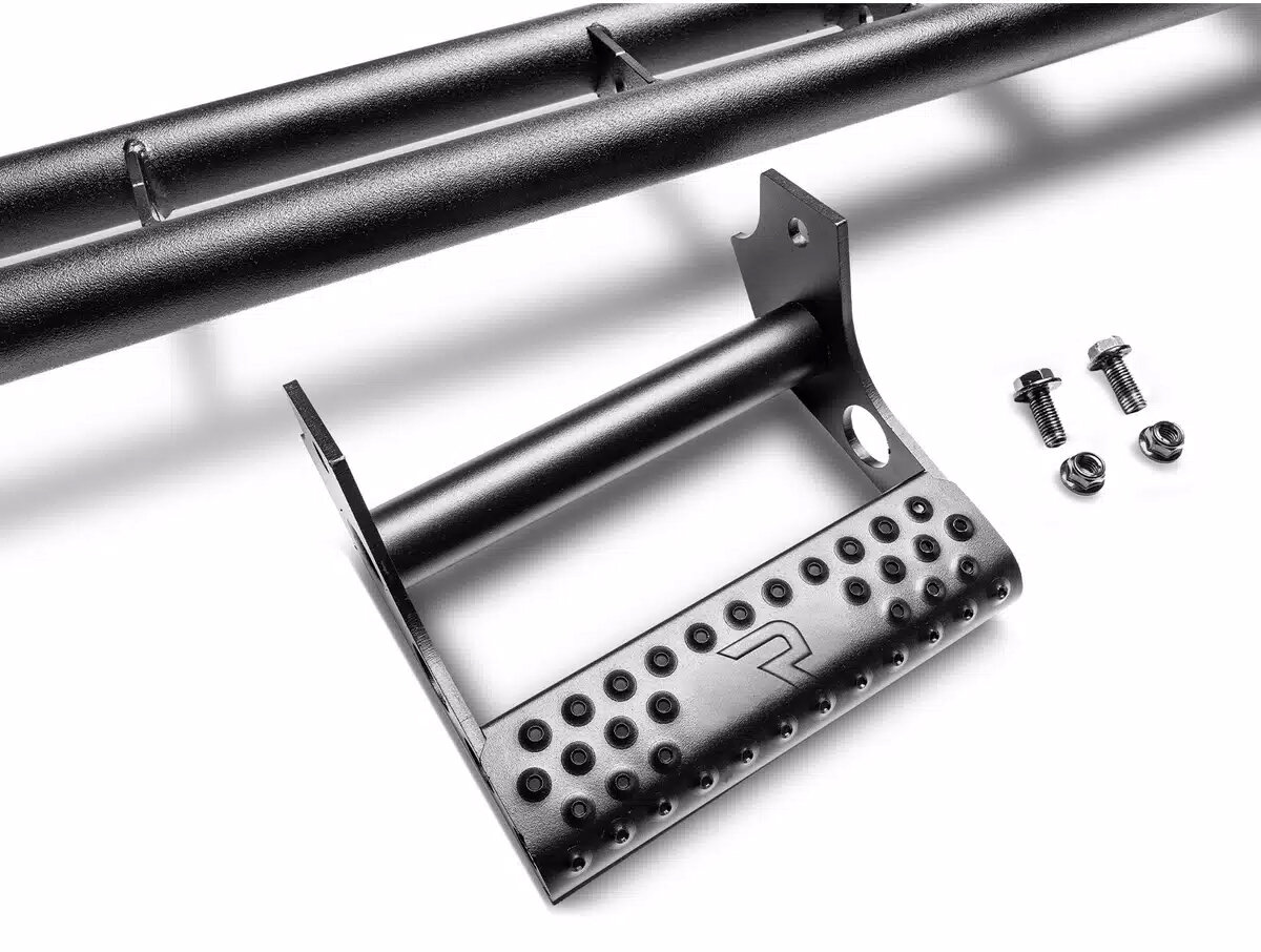 Constructed from fully welded 1.75-inch tubular steel, the RKR rails are engineered to withstand impacts while allowing the truck to slide over rocks and uneven terrain without damaging the rocker panels. The included bolt-on steps offer a stable stepping surface for entering and exiting the vehicle, and can be removed when additional clearance is needed for off-road driving. Finished in a durable textured black powder coat, the system resists corrosion while maintaining a clean, aggressive appearance. Designed for easy installation with factory mounting points, this system offers a balanced upgrade in protection, functionality, and style.