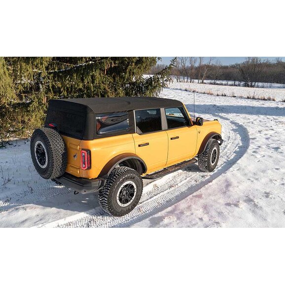 These N-Fab Roan Running Boards are exclusively produced for 2021-23 Ford Bronco Four-Door models and are engineered with durable, fully-welded steel tubing that is load tested to 475 lbs. Boards offer a sturdy 1.75-inch OD perimeter tube supporting a fully-welded 12-gauge steel top plate for easy vehicle access in any weather condition. Adjustable mounting system perfect for stock and lifted vehicles. Includes all hardware for installation and finished in a black textured powder coat to ensure maximum corrosion resistance. Boards are sold in pairs and feature five-year finish warranty and lifetime workmanship warranty.
