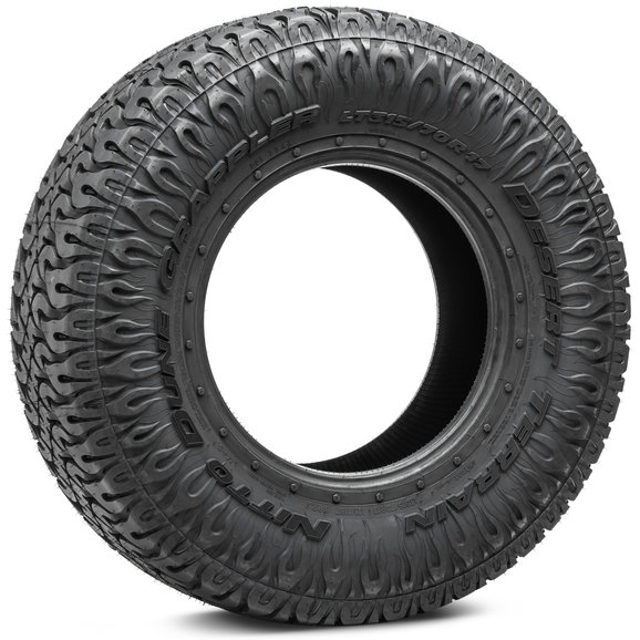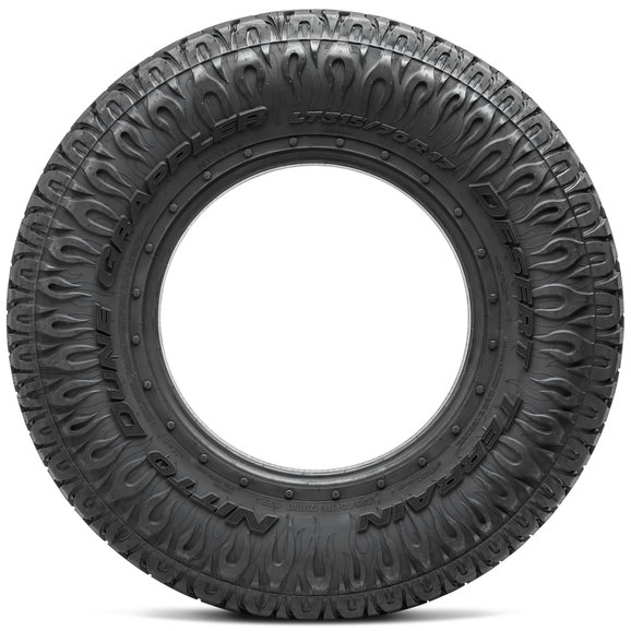 Sidewall Design: Nitto uses a dual sidewall design on all of their Grappler tires. One side has Old English lettering, where the other side features traditional lettering. Both sides have the Dune Grappler “flame” pattern.