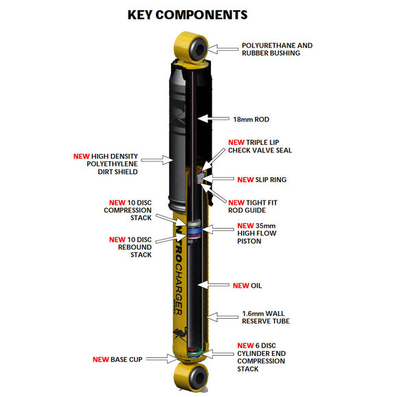 The monotube style main piston valving improves transition and direction changes while the extra base valving provides more fine-tuning for comfort and control. So, the new OME NitroCharger Sport feels like a monotube without the vulnerability or the high price tag.