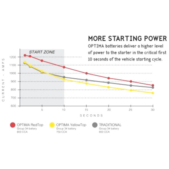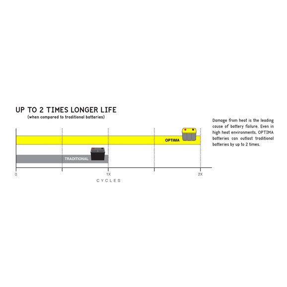 This premium Optima D34/78 YellowTop Battery is designed for Jeeps running additional accessories. Having up to 3 times longer life and faster recharging. Providing the necessary power for all those additional lights, winch, retractable steps & upgraded stereo system. Also, they can be mounted in any position making them a great fitment for a dual battery tray where they can be mounted on their side.