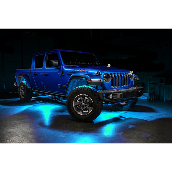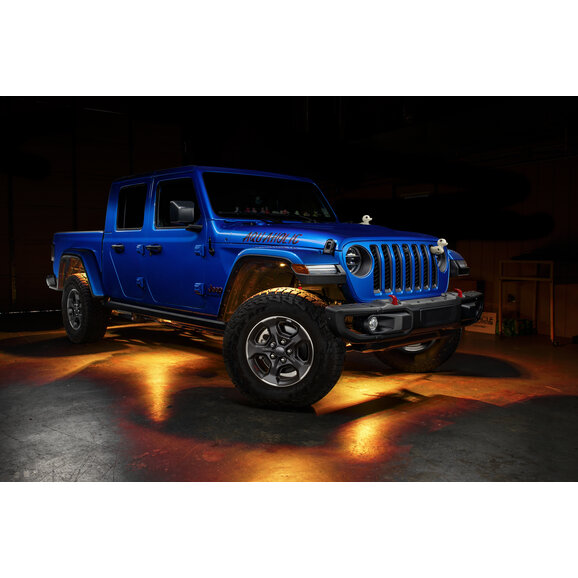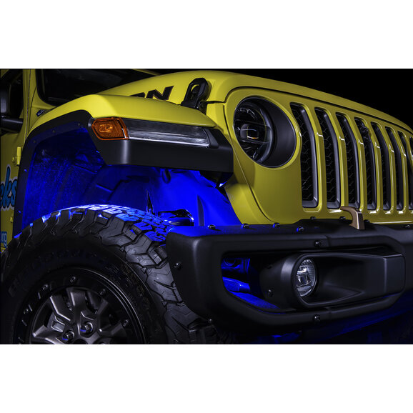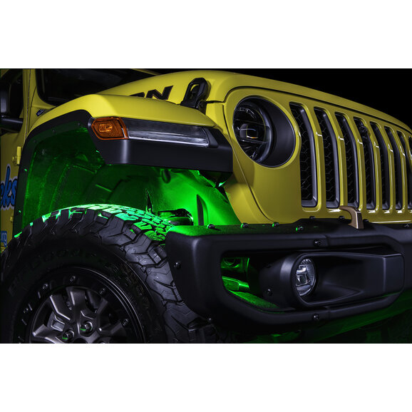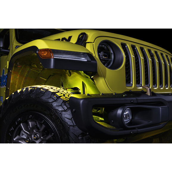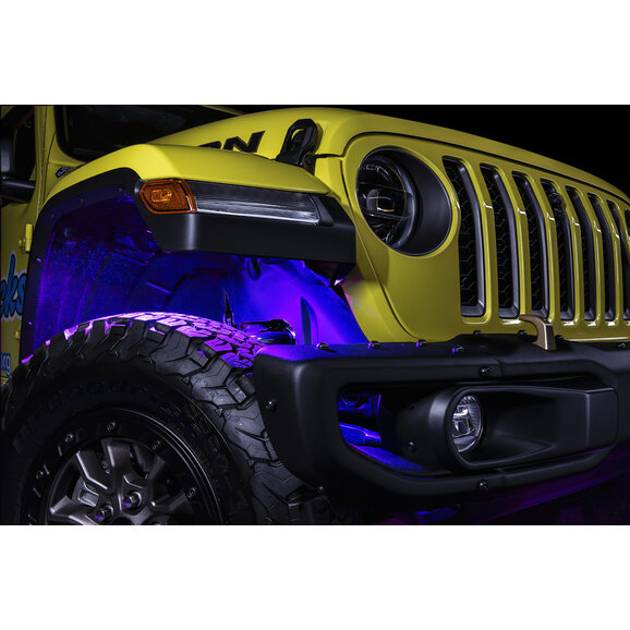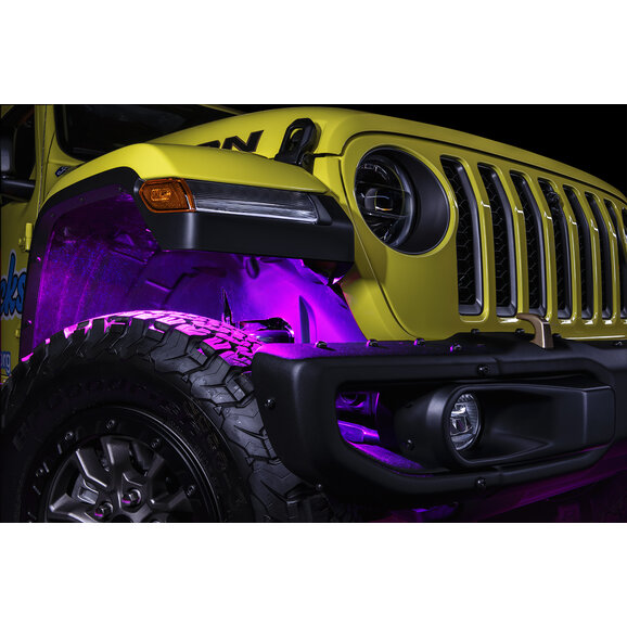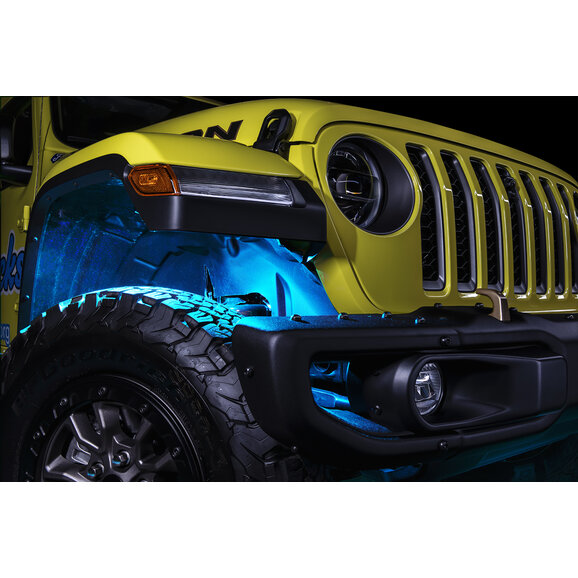 Needing multiple rock lights per wheel is a thing of the past! The all new Oracle Lighting ColorSHIFT® RGB+W Underbody Wheel Well Rock Light Kit provides ultra-wide 230° angle coverage! Each light includes 22 LEDs arranged in 3 emitters to provide maximum brightness and coverage under your Jeep. You can access all of the colors, as well as the True White 6000K, with the free smartphone app or the included remote. You can also select brightness, transitions, strobe patterns, or sync it with your music. This kit is sure to make your rig stand out in the crowd. Installation is a breeze with the plug & play design, and you can rest assured this will withstand the elements with its IP68 waterproof connectors.
