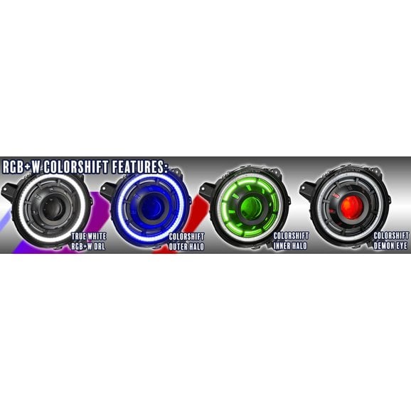 Please note that these ColorSHIFT features are intended for off-road “show” use only and are not compliant for street use. Most states require forward-facing lighting to be white or amber when on public roads.