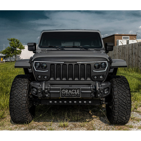 The ORACLE Lighting Skid Plate with Integrated LED Lights for Jeep Wrangler JL & Gladiator JT offers additional protection for your JL or JT sway bar and steering box as well as integrating high-powered functional LED lighting. This heavy-duty skid plate is formed from a 3/16” Steel Plate with a Satin Black Powdercoat finish, which provides durable underbody protection. The LED Lighting modules feature precision optics for a 30° beam width and an option of White or Yellow LED light. This Skid Plate is a simple no-drill installation with all necessary hardware included. Wiring is easy with the included harness which includes a switch for easy on/off operation- or connects to your AUX switches if your Jeep is equipped.