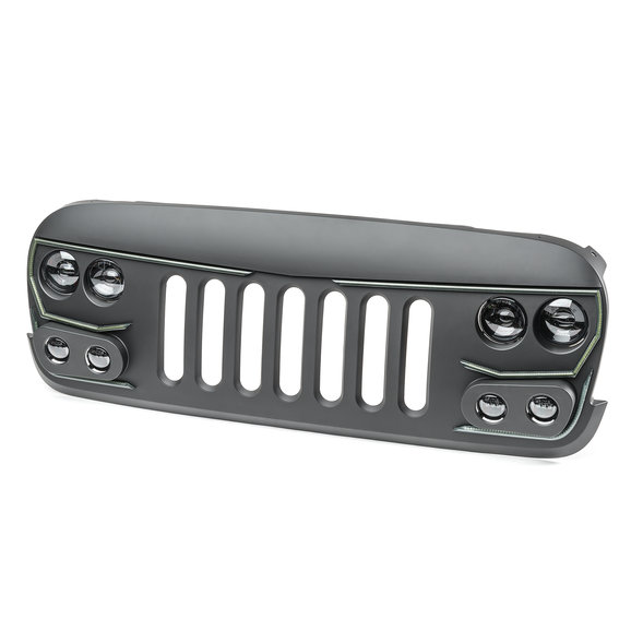 The Vector Grill by Oracle Lighting gives JK owners the first full featured replacement grill that incorporates LED light emitters for Low Beam, High Beam, Turn Signals, and a Dynamic LED DRL. This grill will completely replace the factory grill on any Wrangler JK, and is easily installed with no drilling, cutting or modifications to the vehicle. Each LED emitter can be adjusted independently, so the light focus is on the road where you need it, and not into the eyes of oncoming traffic. The grill comes ready to install right out of the box and is a true plug and play installation using the factory wiring. The Vector Grill incorporates an aggressive look paired with rugged durability which today’s Jeep owners demand!