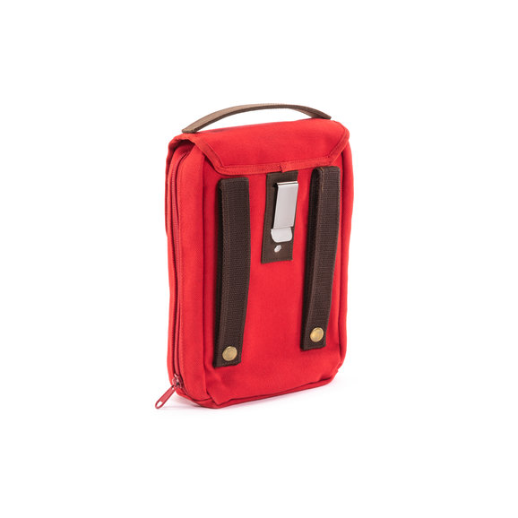 Be prepared for any accidents while out on the trail with the First Aid Grab & Go Bag. This heavy-duty bag is made from durable military-grade canvas red canvas material that will be there when you need it most! On the rear of the bag, the included clip will attach easily to any MOLLE attachment accessories for quick access. The interior features two zipper pockets for smaller items, two larger pockets for bandages and other large items, plus two panels with elastic loops to hold adhesive strip bandages, tweezers, cotton swabs, and other first aid items. First Aid supplies not included.