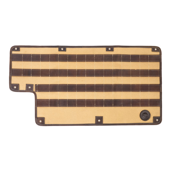 Functional storage is the goal with the HD MOLLE Tailgate Panel from Overland Outfitters. The panel attaches to the inside of the Wrangler YJ or TJ tailgate and provides a secure location to add Grab & Go bags, First Aid bags, or any other style of MOLLE bags you may already own. Made from durable military-grade canvas, this panel features real leather and brass accents to up the level of style to your interior. The MOLLE panel matches up and installs to factory hole locations in the tailgate, so no modifications are necessary for the installation. The HD Molle panel measures approximately 12" high and 26.5" wide and is available in your choice of Black or Tan. Grab & Go MOLLE bags are sold separately.