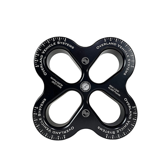 The Overland Vehicle Systems Recovery Distribution Link is designed for self-recovery by safely increasing anchor points and helping to aid a balance load in extreme recovery situations. The Recovery Distribution Link has 4 rigging points to secure with standard steel shackles or soft shackles and includes an angle scale for estimating your sling. Built with aircraft grade aluminum and a 45,000 lb. breaking strength (working load limit of 11,250 lbs.), this recovery tool is built to last. The black powder-coated finish ensures long-lasting durability. Add this tool to your recovery bag to increase your outcome on your recoveries.