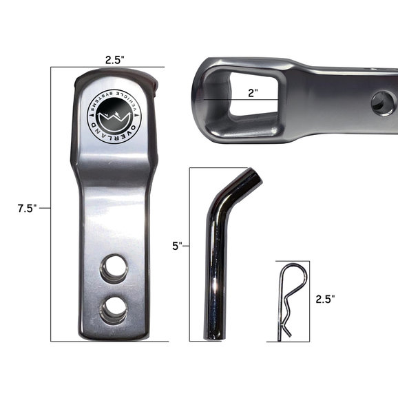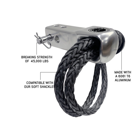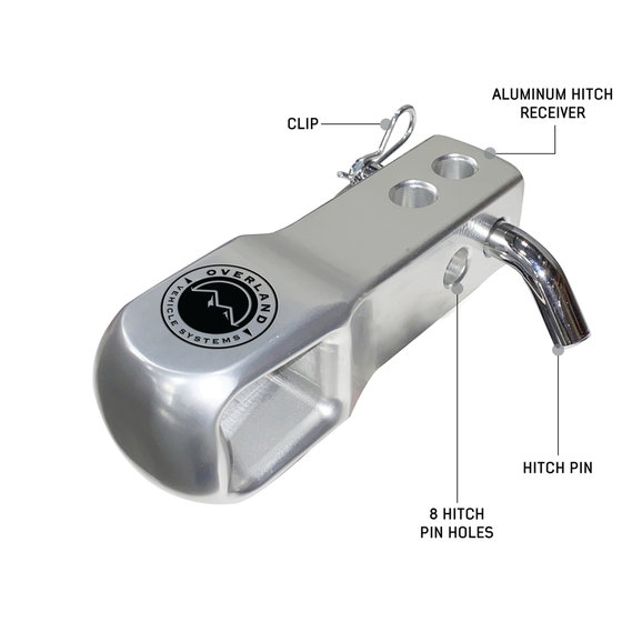 The Aluminum Receiver Mount from Overland Vehicle Systems is compact and lightweight but provides plenty of strength for recovery when you need it. Manufactured fromT6 6061 aircraft-grade aluminum, this receiver mount features a breaking strength of 45,000 lbs. The powder-coated shiny finish is designed to stand up to the elements and give years of optimal performance. Use with any OVS soft shackle and you have the perfect recovery point to get out of the snow or mud. The receiver mount installs into any 2" receiver hitch and secures with the included hitch pin.
