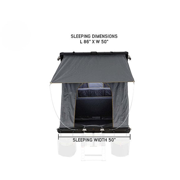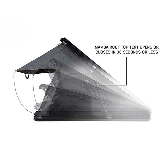 Overland Vehicle Systems' Mamba III Hard Shell Roof Top Tent is the clean, rugged, aerodynamic sleeping option for those who take their Overlanding adventures seriously. This best-in-class tent comes standard with an Anti-Condensation Mat under the thick 2” Mattress, Standard Functional and Removable Cross Bars for additional exterior storage, an insulated honeycomb base, and enough interior space to store bedding when closed. Tent is manufactured with premium 600D rip-stop waterproof fabric designed to provide years of use. Additionally, it is simple to set up and put away in under a minute, and comes with an adjustable interior pop-up strut for additional support when weight has been added to the cross bars. Features a four-year limited warranty.