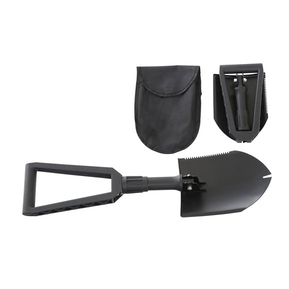 If you are taking your adventures off-road for some weekend fun or planning a more ambitious excursion in your Jeep or 4x4, Overland Vehicle Systems Multi Functional Military Style Utility Shovel with Carrying Case makes a perfect addition to the preparedness gear you carry along. With a strong Boron steel spade that rotates to convert from a shovel to a pick or a hoe, this collapsible and lightweight trail tool features a reinforced nylon handle with extra large grip that measures 23 3/4” when extended. With a two stage powder coat that won’t corrode or rust, the 8 ¼” x 6” spade also features a serrated edge great for helping clear brush out on the trails along with rolled back and side edges for added strength and sure foot placement when digging. An oversized locking collar allows this clever trail tool to be quickly folded compact and stowed in a durable nylon carrying case less than 10” when not in use.