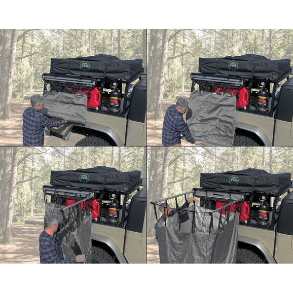 If you are a camper or overland traveler, then you will need some privacy. Instead of struggling to find a place along your route, get the Overland Vehicle Systems Nomadic Quick Deploying Shower. This is perfect for a shower, bathroom, or changing room while camping or just out on the trails. It is lightweight and easy to install to your Jeep like any other awning. Made with 420D Oxford Rip Stop fabric and aluminum folding arms for strength and stability for peace of mind.