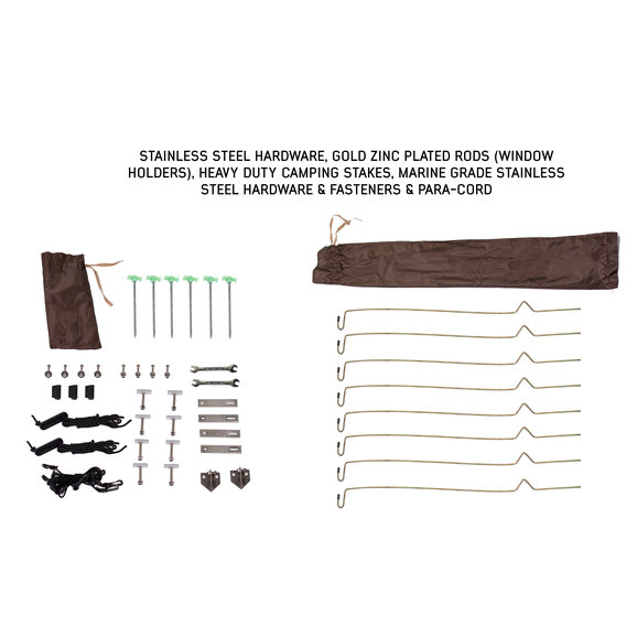 Convenience Options:From the comfortable thick mattress to the built-in skylight, all of the windows are mesh that can be zipped open or closed to enjoy the fresh air. 4 interior storage compartments allow you to store personal items for quick access that is off of the floor and out of the way. Easy Setup & Takedown: This tent can be set up in literally a few minutes. The tent folds outward and is supported by the attached telescoping ladder for support. Just set up the included window props and you are all set. When you are ready to go, just collapse the tent put on the heavy-duty waterproof PVC travel cover, and hit the road. Waterproof Construction: Constructed from waterproof 280gs Rip-Stop Cotton Canvas material that will keep you dry in all seasons. Keep covered in the rain with the included 420D Polyester Oxford Waterproof Rain Fly that installs easily.- Shipping Weight: 108lb