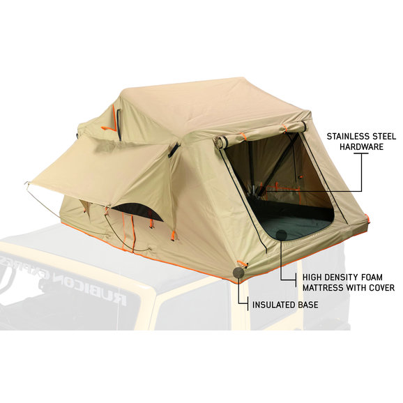 Sleeps 3 People in comfort: The Roof Top Tent has a sleeping footprint of 94.5”x55.25”, and fully open is 94.5”x56.5”x5.25”. This is plenty of room for a solo trip, bring the family. The included 2.5” thick foam mattress is much preferred over sleeping on the ground!