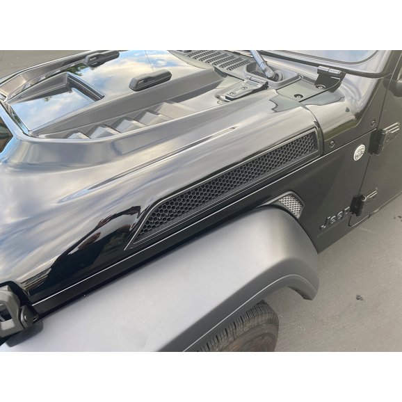 With the Grotto Hood from Overtread you are not only getting a stylish hood that will transform the look of your Wrangler JL or Gladiator JT but you will also be getting a functional hood. First with the looks your Jeep will get an aggressive makeover that will turn heads on the trails. Then the next part is the vents that will allow cool air to come in the center vent cooling your enigine while the hot air goes out the two side vents. This will help reduce under the hood temperatures while you are stuck in traffic or crawling on your favorite trail.