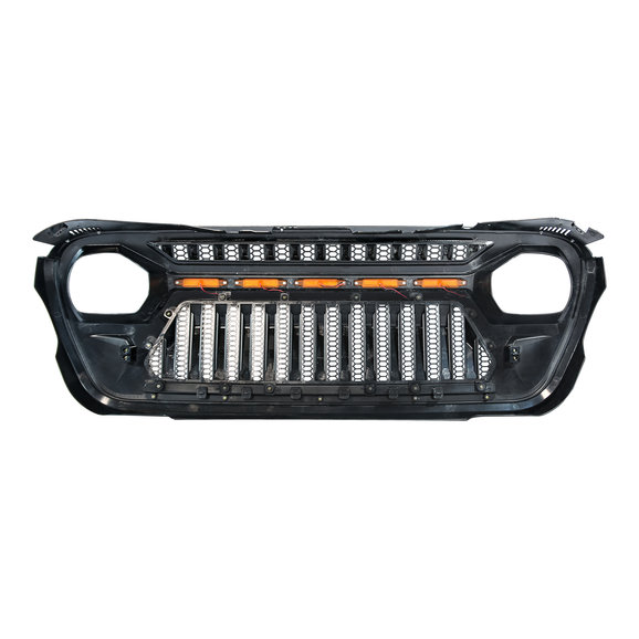 If you are looking to customize the front end of your Wrangler JL or Gladiator JT why not take it one step further with the Mojave Front Grille from Overtread. This grille not only gives your Jeep a fresh new look but it also has built in LED lights so you can see better at night. Made from injection molded plastic this grille mounts to the factory mounting points so you will not need to make any modifications. Please note: This product requires splicing/tapping into factory wiring or installation of an auxiliary wiring harness to use the light(s).