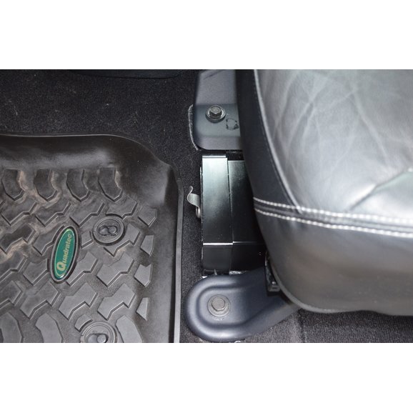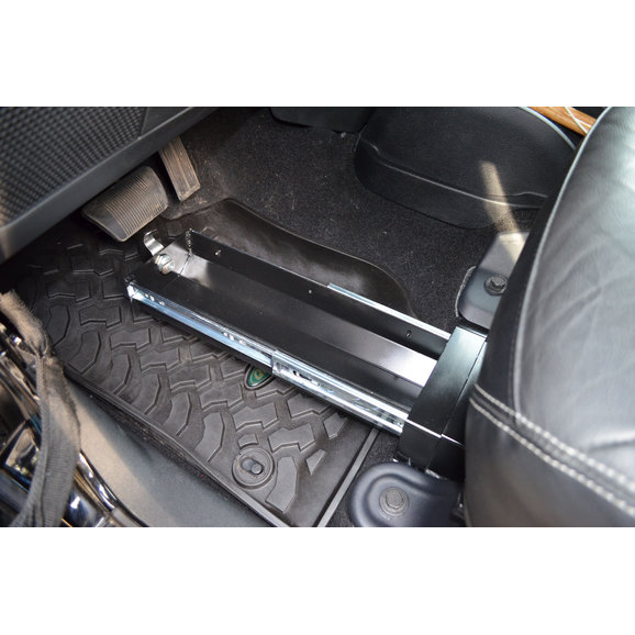 The Owens Venum JK Jeep Under Seat Storage Box is a clever way to lock up your valuables in an area not seen by most thieves. Make use of the extra space under your seats and keep your items secure. This Under the Seat Storage Box is built from heavy gauge aluminum with a textured black powder coat finish to help conceal it. The drawer easily slides open with HD drawer slides. The Storage Box is equipped with a Keyed lock and includes a set of keys. The mounting is made easy by utilizing the factory seat mounts. Proudly Made in the USA, this Under the seat Storage Box includes a 3 Year Manufacturers Warranty.