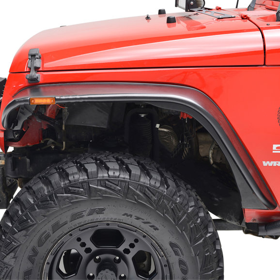 Paramount Automotive Flat Style Fender Flares for Jeep Wrangler JK models come in a set of 4 pieces for the front & rear of your Jeep. These flares are made from heavy duty ABS plastic material and have a sleek rivet style design. These Flat-Style Flares give your tires coverage with a measurement of 5.5" for the front & rear. All hardware is included and the flares can be painted to match your vehicle. The flares are 100% UV protected to offer years of durability. The front flares include the side marker lights.